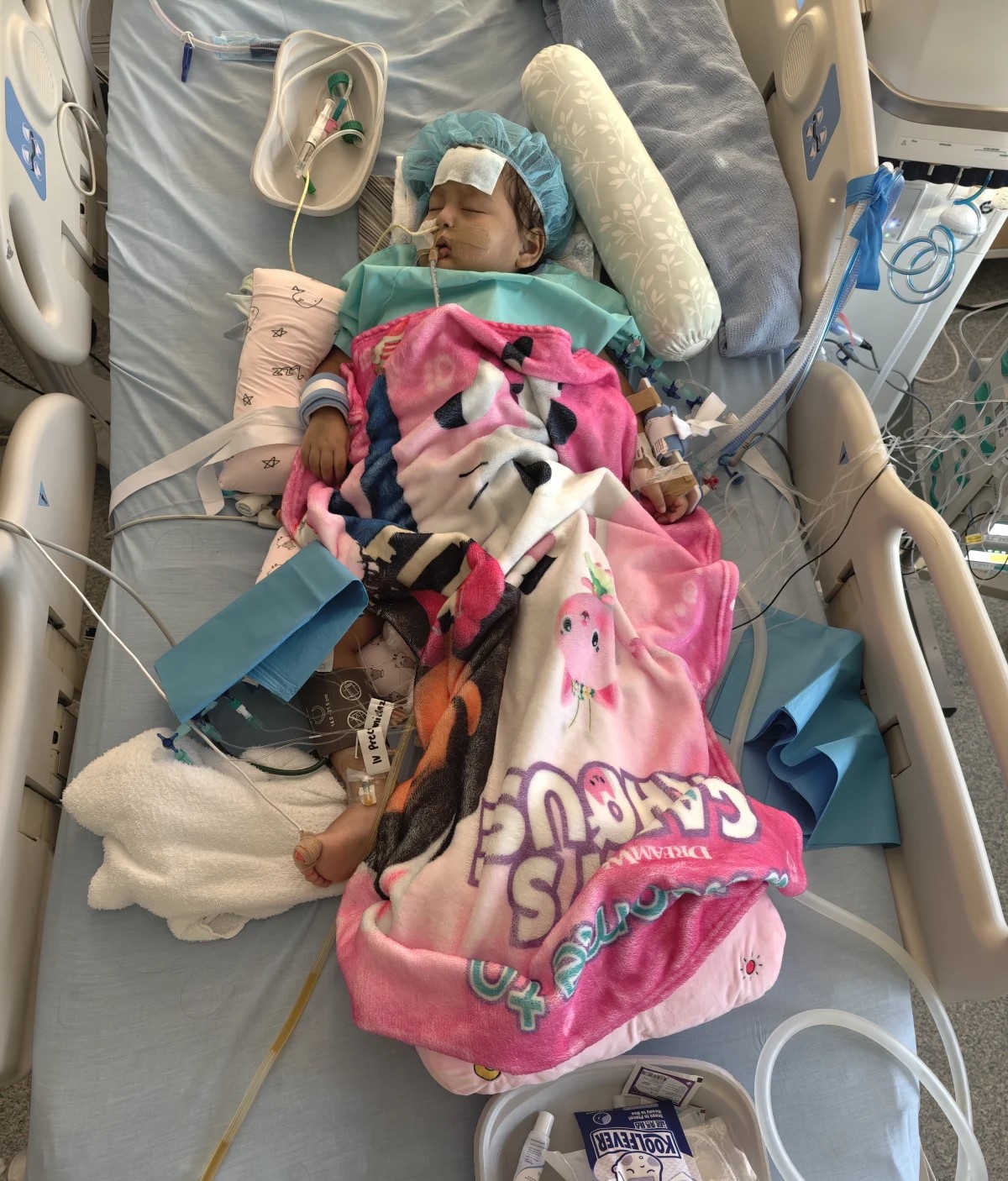 After surgery, she spent 35 long days in an isolated ward. Her body was covered in tubes and wires—machines breathing for her, feeding her, monitoring every fragile function. The sterile hospital room became our entire world. We stayed by her side day and night, holding her hand through every beep of the machines, every painful procedure, every tear that fell down her cheeks. She asked us why it hurt so much. And as parents, there is no answer more devastating than not knowing how to take your child’s pain away.