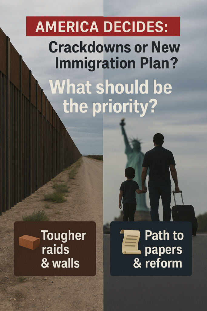 On one side of the stage stood the champion of crackdown politics — promising more raids, more arrests, more deportations, and “the toughest border in history.” On the other stood the architect of a sweeping “New Immigration Plan” — a detailed proposal to trade mass raids for background checks, fines, work permits, and a long, narrow path to citizenship.