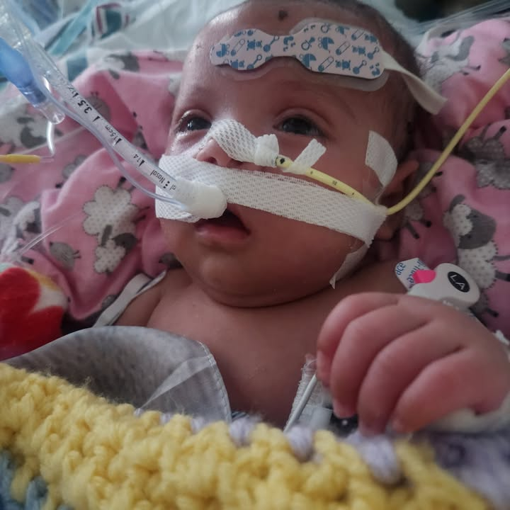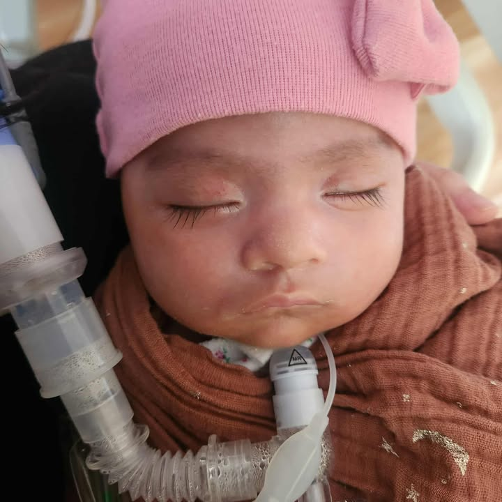 In the first photo, baby Evelyn is tiny and peaceful, resting before her life was forever altered. In the photos that followed, you see the reality her family now lives every day—a life shaped by delays, unanswered concerns, and irreversible consequences.