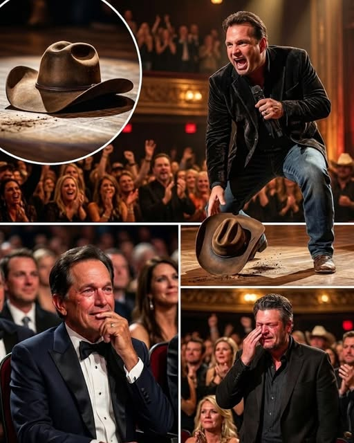 Then, as he reached the chorus, Brooks stepped back, removed his signature cowboy hat, and slammed it onto the stage floor with a sharp thud. The symbolic gesture sent a wave of emotion through the audience.