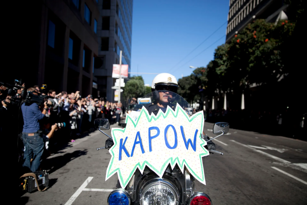 That morning, thousands of people filled the streets wearing Batman shirts, waving signs, and cheering for their hero. Miles, dressed in a full Batman costume, rode through the city in the Batmobile, “rescued” citizens in staged emergencies, captured villains, and even received a special proclamation from the mayor of San Francisco.