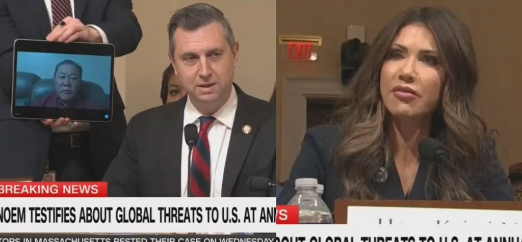 Noem uncomfortably says yes, and Magaziner gets her to agree to look into his case, reminding her that she has the power to make decisions and it’s her fault this man was deported. Noem then tries to launch into her usual spin before Magaziner cuts her off and forces her to face another victim of her cruelty