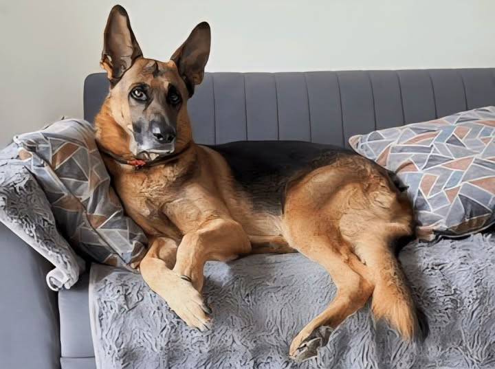 He walked straight inside, climbed onto the couch, lay down with a deep sigh… and looked at me.