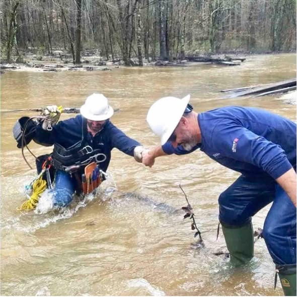 Just days after Hunter was critically injured, Denny was doing the very same selfless work. Climbing into a bucket truck. Answering the call. Working through dangerous conditions to restore electricity to thousands of people still sitting in darkness.