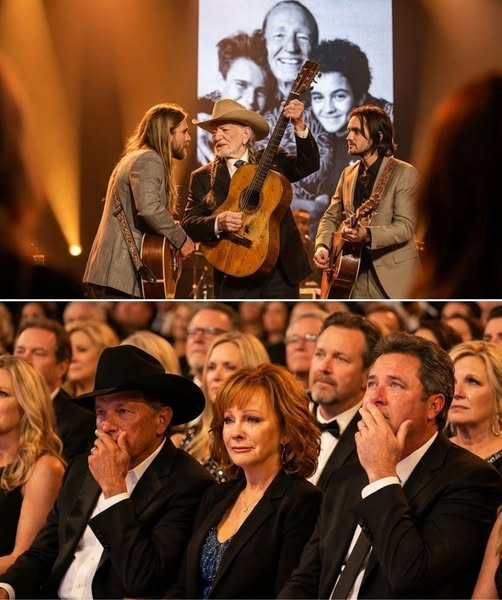 The first chord hit, and goosebumps spread like wildfire. Willie’s voice, worn and weathered like leather warmed by a Texas sunset, carried decades of stories. Lukas and Micah didn’t overpower it — they held it, protected it, carried the flame he lit long ago.