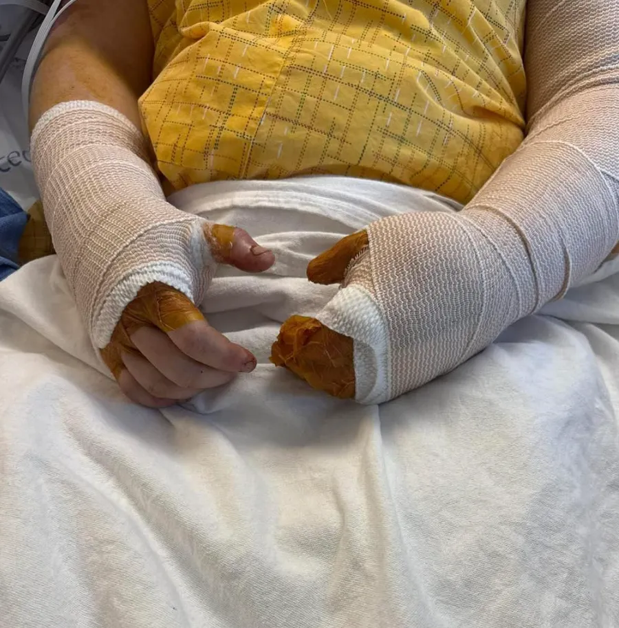 They removed dead and dying tissue from his right thumb, left forearm, and wrist.