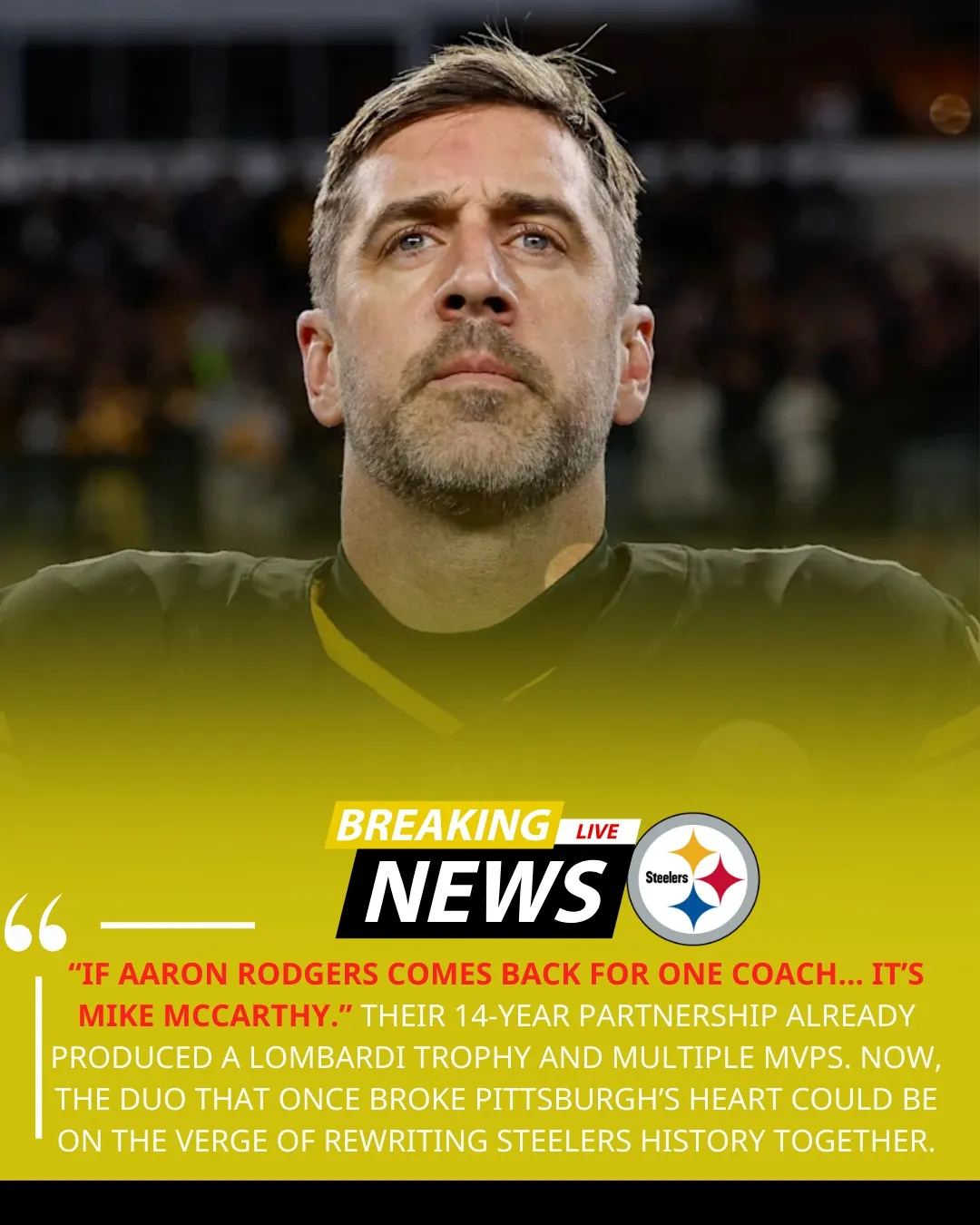 The Steelers have reportedly made their head coach decision, hiring McCarthy to replace Mike Tomlin. McCarthy is a Pittsburgh native who grew up cheering for the Steelers, and now brings a resume rich in experience to the Steel City. The million-dollar question: Is Aaron Rodgers coming with him?