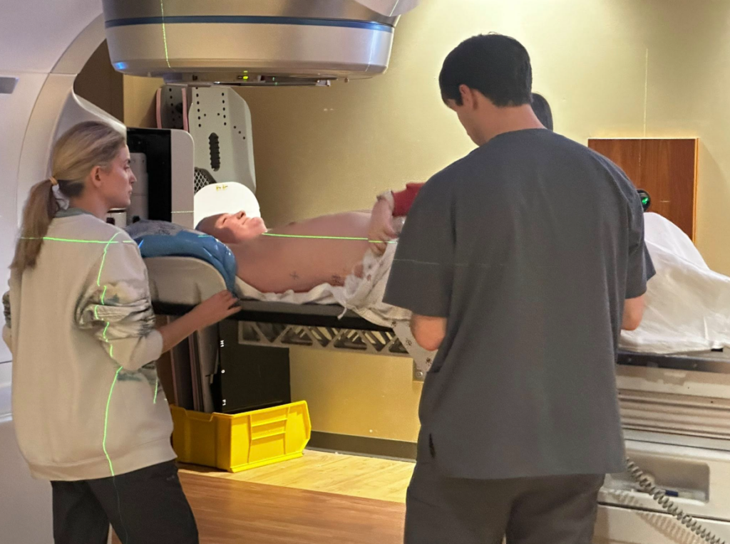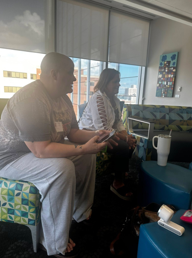 In the small changing room area, another mother was sitting next to her son, speaking softly to a medical staff member.