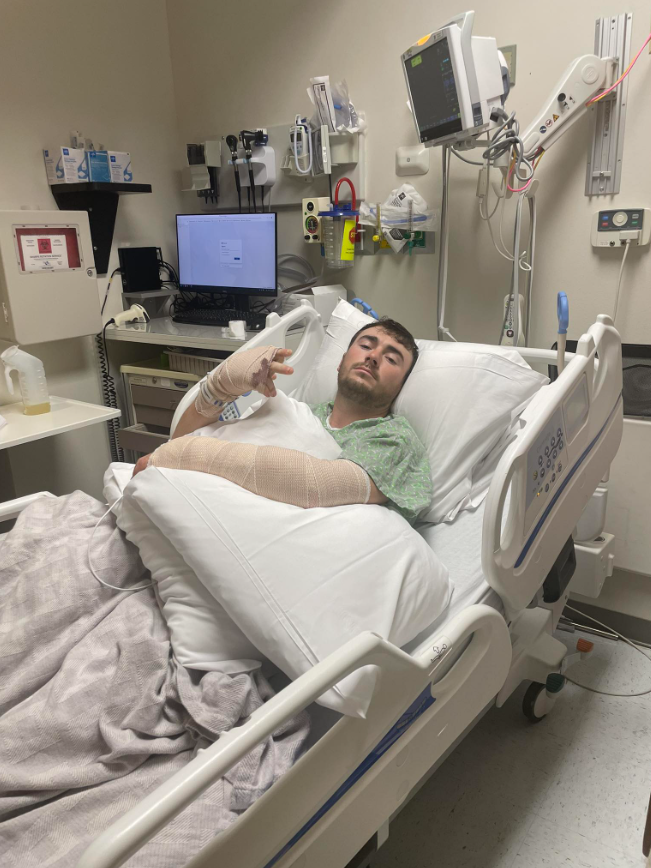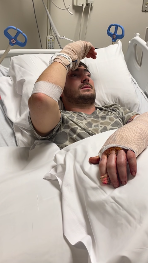 According to reports, Hunter is conscious but still in a lot of pain.