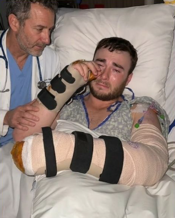 He will pour all his energy into the lengthy surgery ahead — meticulous repairs to nerves and body tissues, preserving every drop of strength he has left in preparation for the long journey of recovery.