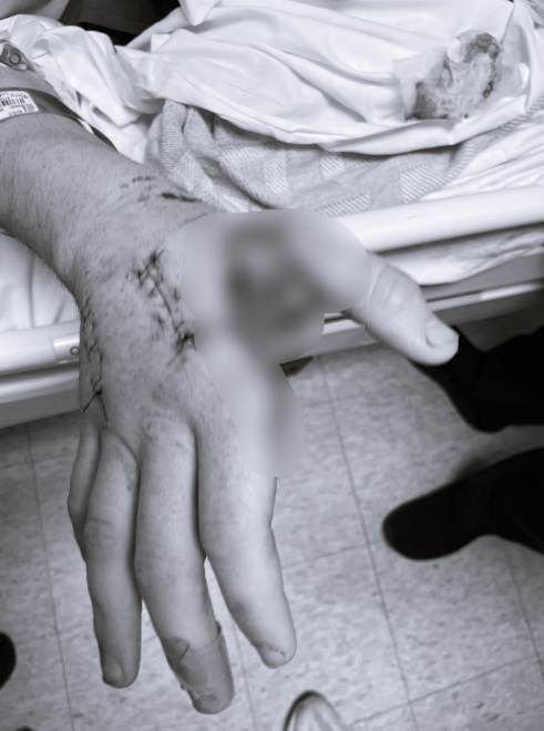 Around the incision on Hunter’s right hand, the skin began to turn abnormally red.