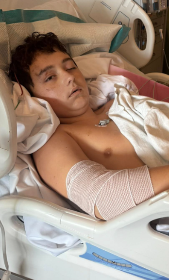 Brantley lay there beneath thin white sheets, his small body still and fragile, his face marked by swelling and the faint traces of what he had endured.
