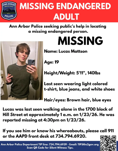 According to the Ann Arbor Police Department, Lucas was reported missing around 4:30 p.m. Friday, when family and friends were unable to contact him.