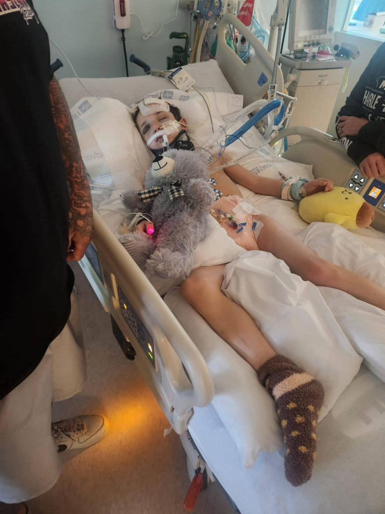 His lungs are currently filled with fluid, making breathing a constant challenge. At the same time, his body is fighting multiple infections — pneumonia, the flu, and a staph infection — all at once. Each of these illnesses alone can be dangerous. Together, they place immense strain on an already weakened system.