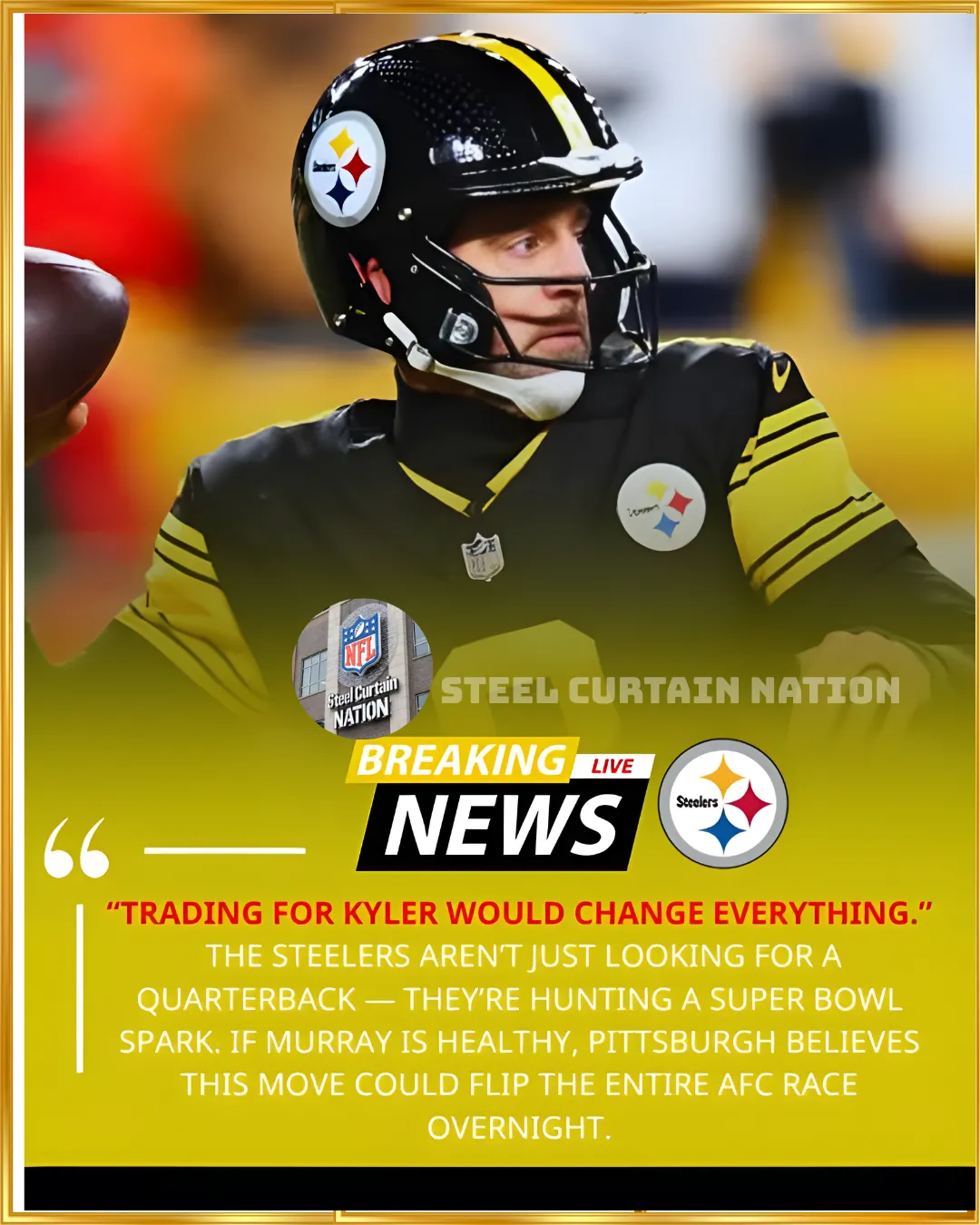 The Pittsburgh Steelers are reportedly eyeing a bold move to shake up their offense, and it’s all about bringing in Kyler Murray from the Arizona Cardinals. According to insiders, the Steelers believe trading for Murray could be the move that completely